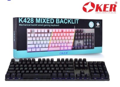 KEYBOARD OKER Mechanical Backlit K428 BLACK - BLUE SWITCH คีย์บอร์ด เกมมิ่ง แมคคานิคอล บลูสวิช