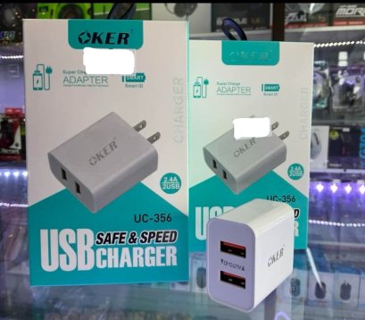 OKER อะแดปเตอร์หัวเสียบ 2 USB/2ช่อง รุ่น UC-356 Quick charge 2.4A ขนาด 12 วัตต์