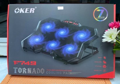 OKER F749 TORNADO COOLING PAD NOTEBOOK พัดลมระบายความร้อน แท่นวางโน๊ตบุ๊ค ปรับระดับได้ ปรับความเร็วได้