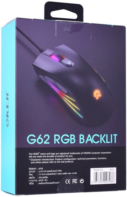 MOUSE OKER G-62 RGB BACKLIT เมาส์ 7 ปุ่มดีไซน์ทันสมัย