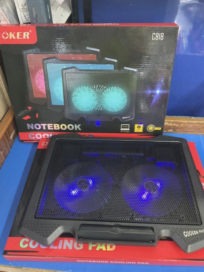 NOTEBOOK COOLING PAD OKER C818 สีดำ แท่นระบายความร้อนได้ดีเยี่ยม พัดลม โน็ตบุ๊ค ไฟสีฟ้าสวย