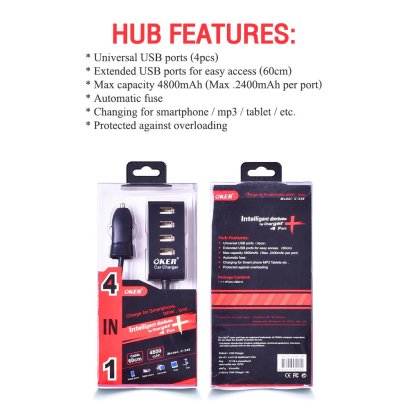OKER changer USB 4 port แบบเสียบที่ช่องจุด บุหรี่ในรถยนต์ C-348