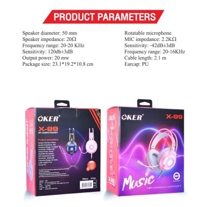 OKER หูฟังเกมมิ่งไฟ LED รุ่น X-99=Pink