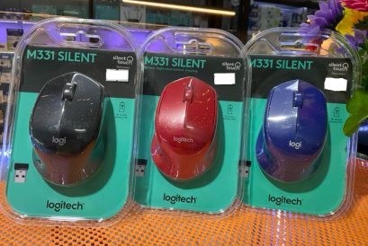 LOGITECH MOUSE WIRELESS M331 SILENT 1000DPI 2.4GHz เชื่อมไกล 10 M. มี 3 สี แดง, น้ำเงิน, ดำ 1Y