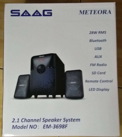 SAAG SPEAKER (ลำโพงบลูทูธ) SAAG METEORA EM-3698F 2.1 กำลังขับ 28W(BLACK) METEORA EM-3698F 2.1 กำลังขับ 28W(BLACK) (2.1) SAAG METEORA (EM-3698F) USB Output power : 28W Subwoofer : 4" x 1 Satellite : 3" x 2 Remote Control