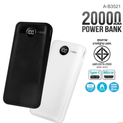 POWER BANK 20000mAh ASAKI (A-B3521) LCD อุปกรณ์สำรองไฟพกพา (Power bank) ความจุ 20000mAh.