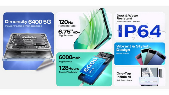 Infinix Hot 60i 5G Ram 8GB / Rom 256GB ชิปเซ็ต Dimensity 6400 จอ 6.75 ลื่นๆ รีเฟรช 120Hz แบต6000mAh ประกันศูนย์ 1ปี