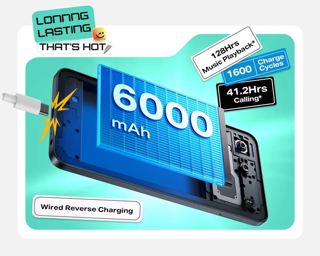 แบตเตอรี่ : 6000mAh รองรับการชาร์จเร็ว 18W