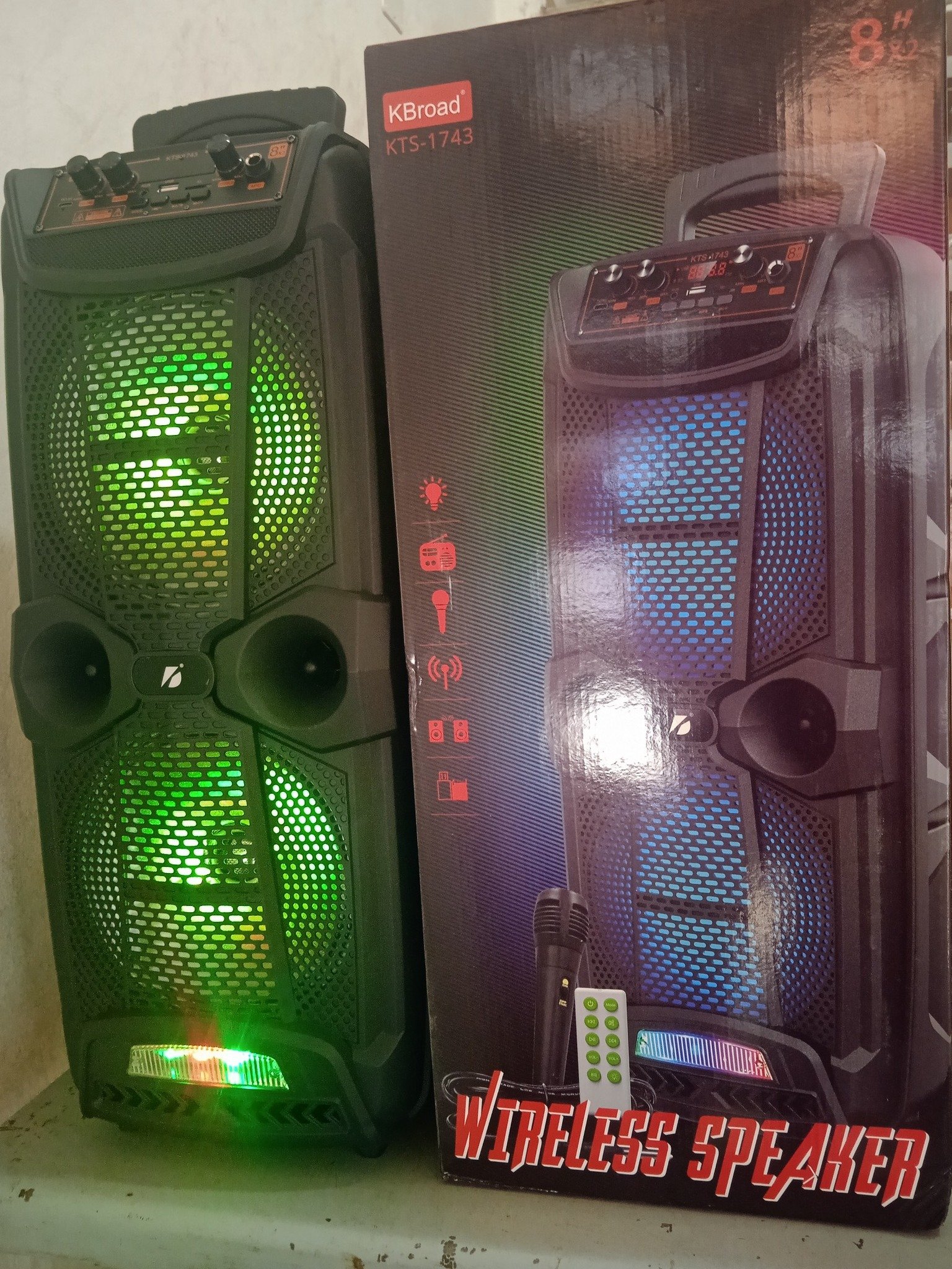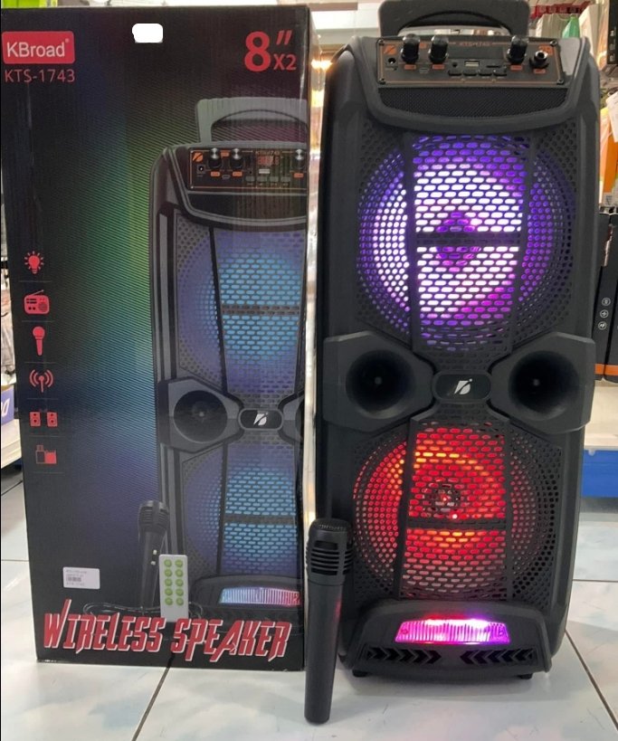 ลำโพงบลูทูธ KTS-1743 ดอก8นิ้วX2 ฟรีไมค์สาย/รีโมท ใหญ่สะใจ ปรับเบส/เสียง/ไฟได้ AUX/USB/TF แบตในตัว ลำโพงไหญ่ ลำโพงเสียงดี