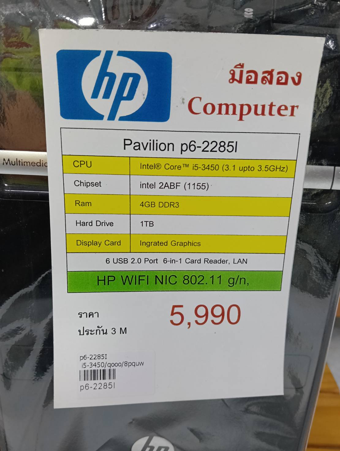 DESKTOP PC HP com HP pavilion P6-2285I Core i5-3450 คอมพิวเตอร์ตั้งโต๊ะ สินค้ามือสอง ประกัน 3 เดือน